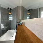 Varje rum har arbetsbord, brandvarnare och TV med flera kanaler för din bekvämlighet. I denna lägenhet finns separat toalett och dusch.
